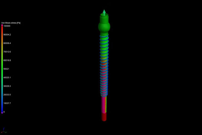 This image is an example of a screw where a stress test was simulated to determine potential weaknesses in the material.