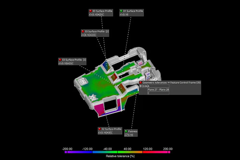 • Dimensional 3D measurement technology offers the possibility of fast, single-point-based distance and angle analyses. This means that all shape and position tolerances can be evaluated.