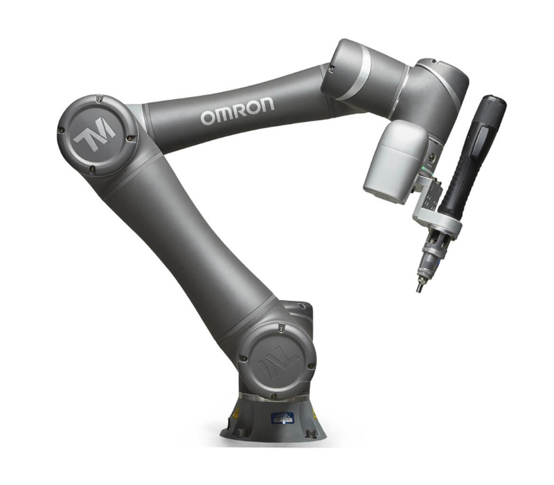 The OMRON TM Collaborative Robot features a built-in vision system. The integrated camera localizes objects in a wide field of vision, and the image-enhancement light enables object recognition under almost any conditions.