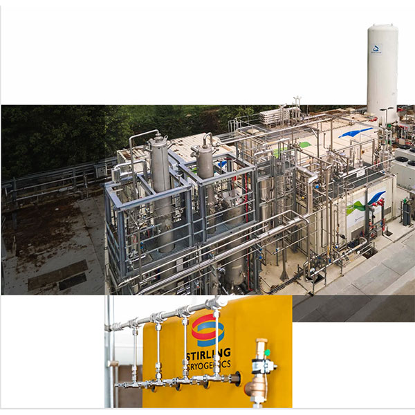 Durch den Einsatz des Stirling-Kryokühlers kann das BioLNG mit einem Druck von bis zu 0,5 barg hergestellt werden. Während des Verflüssigungsvorgangs werden aus 600 Litern gasförmigem Biomethan 1 Liter BioLNG. BioLNG ist einfach zu transportieren und dank seiner 3-mal höheren Dichte deutlich effizienter als BioCNG. Das hergestellte BioLNG wird hauptsächlich für den Fernlastverkehr eingesetzt. Die Stirling-Kryokühler wurden in den 1950er Jahren für die Verflüssigung von Stickstoff entwickelt und sind daher für Temperaturen von bis zu -196 °C ausgelegt. Nähere Informationen über das umgekehrte Stirling-Verfahren finden Sie auf unserer Website.
