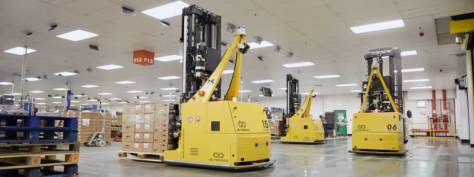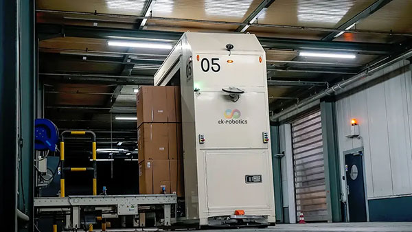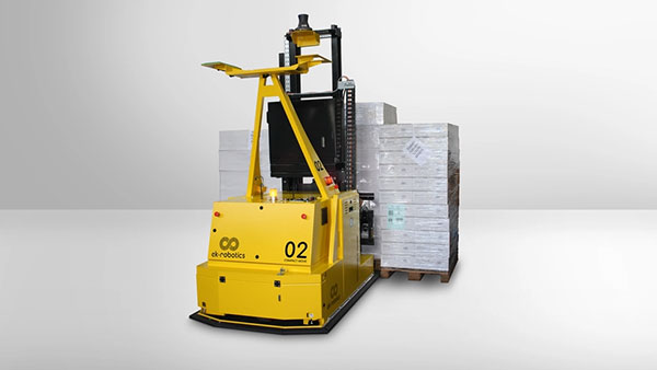 In the area of narrow-aisle warehouses, ek robotics offers fully automated solutions with transfer heights of up to 14 metres. The transport robotics specialist automates conventional manual narrow-aisle stackers with the appropriate navigation technology and sensors which enables process-reliable load cycles even at high heights.