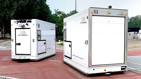 The CUSTOM MOVE transport robots from ek robotics, developed for outdoor operation, can be used 365 days a year, 24 hours a day, regardless of the weather conditions, thanks to the fast-charging technology and LI-ION batteries.
