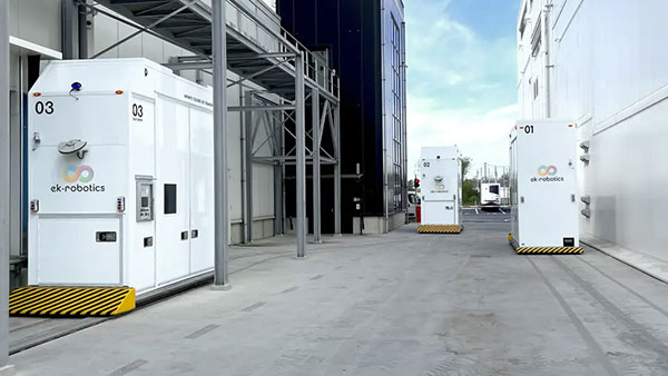 • For companies such as Gambro Dialysatoren GmbH (now part of the Baxter Group) and other companies from the pharmaceutical industry, JT International Germany GmbH from the tobacco industry and the beverage manufacturer Gerolsteiner Brunnen GmbH & Co. KG, ek robotics has integrated several outdoor systems that connect production halls and warehouses and are equipped with various special functions, such as a cooling unit.