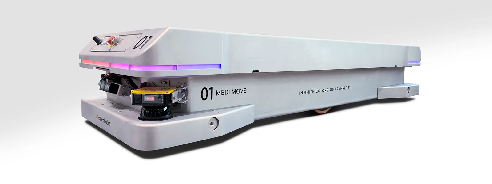 • With its customized design and high performance, the MEDI MOVE is designed for automatic transport systems (ATS) in hospitals. Here, the transport robot navigates through underground route networks as well as over several floors to supply hospital wards, sterile departments and nursing areas. Precise deliveries of meals and medicines as well as the transport of laundry and waste to disposal stations will be among the main tasks in the future.