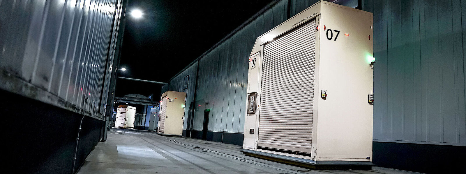 For the transport of special storage containers, the tobacco company JTI use driverless transport vehicles from ek robotics in combined indoor and outdoor operation.