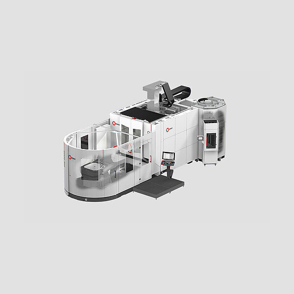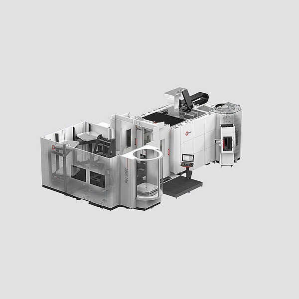 Even machines for applications with increased demands on precision or machining volumes are manufactured. The different machine models are available with magazine extensions and a pallet changer. Furthermore, various handling systems are offered directly from the manufacturer.