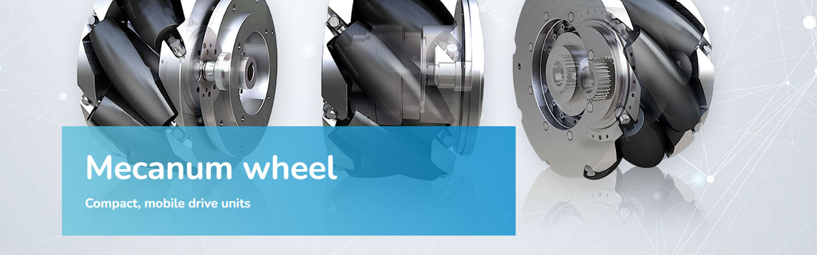 Whether turning on the spot, cornering in any radius or maneuvering in the tightest of spaces - thanks to the Mecanum wheel, driverless transport vehicles, conveyor vehicles or autonomous mobile robots can move freely in all directions like a hovercraft. Without any maneuvering or turning circles. This omnidirectional maneuverability enables limitless mobility and makes the Mecanum wheel a key component for modern, mobile drive concepts. Our drive units combine the Mecanum wheel with innovative cycloidal gear technology to guarantee the best performance with ultimate compactness.