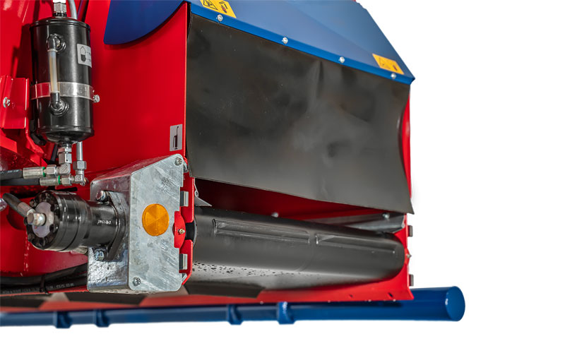 The SILOKING cross conveyor belt at the front with different slat heights and two-sided drive via two hydraulic motors belongs to the standard equipment of the machine, as well as 4 load cells from model Premium 11 on. From model Premium 11 on, the standard gearbox adapts the auger speed to the forage components for optimal forage consistency.