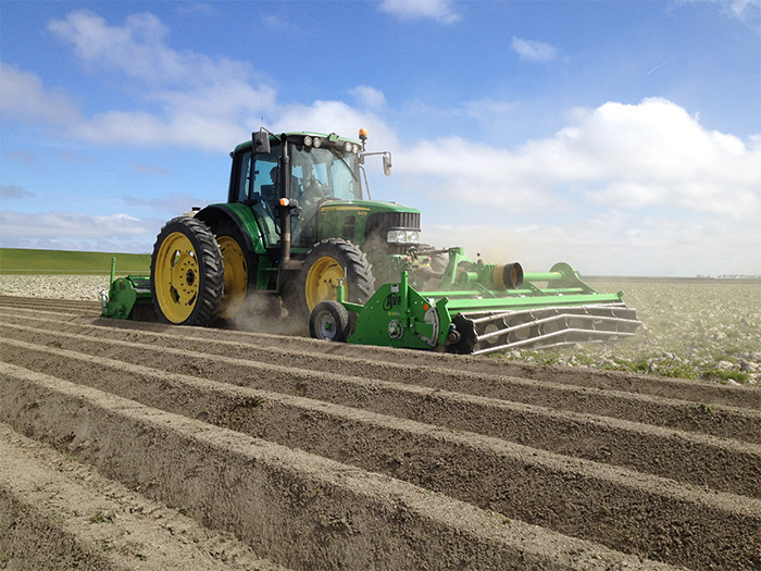 When cultivating potatoes, the preparation of the seed bed is crucial. A good soil structure ensures a good water management and temperature in the ridge, which in turn have a positive influence on the tuber setting and prevent tuber deformation. Also important: an optimal crumbling while planting is the first step towards a successful harvesting season; in comes the AVR Multivator!