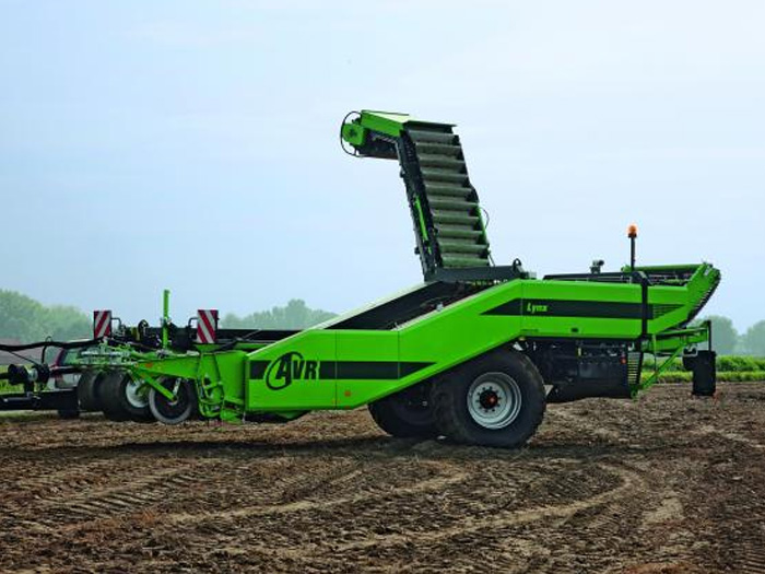 The AVR Lynx harvester is uniquely positioned on the market. This two-row harvester can both be used for in-line and off set harvesting. Three types of cleaning modules are available: pintlebelt, Varioweb and cross rollers.