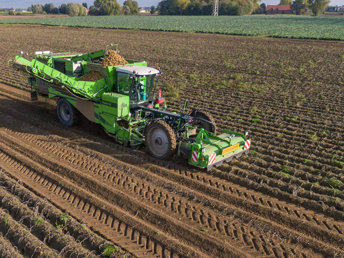 The Rafale haulm topper is available as a 2-row up to 8-row version. 2- and 3-row machine with lateral discharge available.