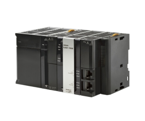 The NJ5 series is a machine controller for logic sequence and motion that includes CPU options for advanced functions such as robotics and database connection.