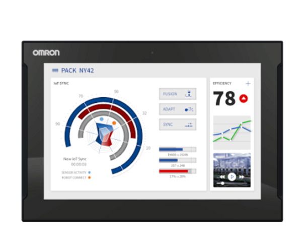 As part of the Sysmac automation platform, Omron NA HMI transforms machine data into information, shows information and controls devices based on requirements at FA manufacturing sites. The NA Series enables faster, more efficient control and monitoring. With a widescreen displaying 16,770,000 colors, the HMI that is dynamic, intuitive and predictive makes industrial machines more attractive and competitive.