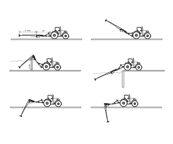 • Hydraulic cylinder (double-action) to control the insertion angle
