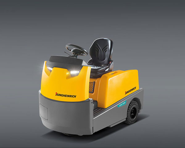 Our solid and dynamic Series 5 sit-on tow tractors are ideal for the transport of loads weighing up to 10 tonnes. They can be combined with Jungheinrich GTE trailers as well as with all other trailers and are therefore very flexible. Rely on solid power for indoor and outdoor use with a sturdy steel frame that will surely last the whole life of the tow tractor. The 48-V 3-phase AC drive motor enables powerful acceleration and high end speeds. The coupling is available in different versions, it is clearly visible from the seating position and easy to reach. The fully sprung chassis protects both the operator's back and the truck. The spacious and comfortable operator position provides ample legroom, and controls such as the steering wheel, travel direction switch and indicator lever are always within easy reach. The low step tread makes entry effortless.