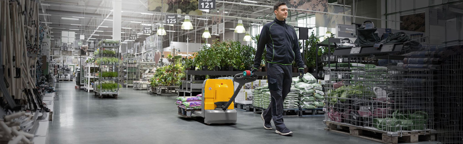 The EJD 120i electric pedestrian stackers are accomplished helpers for retail environments, loading and unloading HGVs and double-decker transport over uneven floors. They are particularly impressive due to their perfect combination of compactness, manoeuvrability and stability. Thanks to the integrated support arm lift for increased ground clearance, the EJD 120i easily overcomes uneven ground, ramps or loading bridges. In addition to selectable masts, different lithium-ion battery variants from 50 to 200 Ah and integrated chargers allow optimum adaptation to individual application requirements. In terms of safety, the EJD 120i impresses with its coupled ProTracLink support wheels for increased stability, an optional foot protection tiller to protect operators, as well as further additional options for enhanced health & safety.