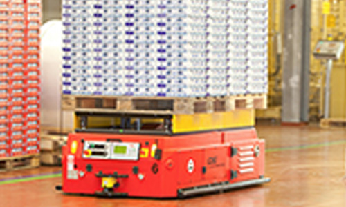 The internal transport of pallets, wire-meshboxes and other similar containers can be carried out by our AGV - automated guided vehicle system.