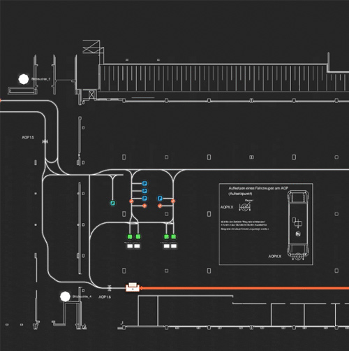 Routes can be dynamically recalculated at any time, for example, if orders with a higher priority arrive or if other vehicles have to use the same route. Route planning can also take place over several floors.