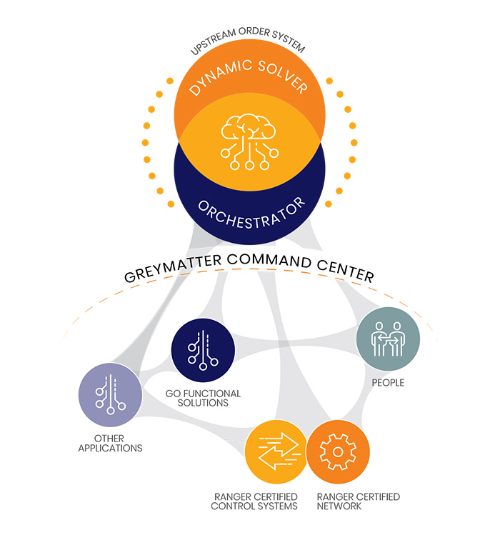 The GreyMatter™ FOS rapidly responds to real time exceptions and events, prescribes actions, and orchestrates integrated and frictionless performance across every node