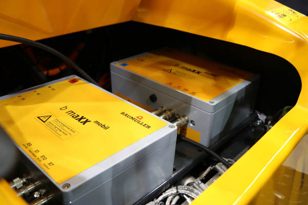 Baumüller equips both main drives as well as ancillary drives, e.g. the hydraulics in the bucket of a wheel loader, with its components and beyond the electric drive system also offers the possibility to incorporate the diagnostic and remote maintenance tool BAUDIS IoT. In this way, necessary service measures can be planned for specifically in advance and operating times and loads can be optimally monitored and evaluated. This saves costs and increases efficiency.