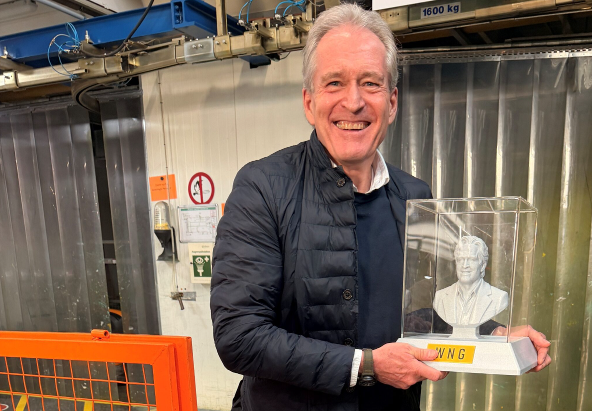 At a special town hall meeting, we honored Wilfried Neuhaus-Galladé for his many years of service and his formative contribution to the development of the company. As a personal token of appreciation, he received a 3D-printed model of a PROFI 100 TI and a portrait produced in the same way by our company’s own 3D Factory.