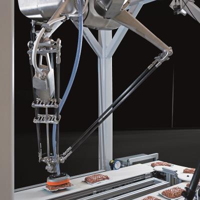 The first model of the new-generation delta robots will be available with two different surface finishing’s. It is either painted or plated to achieve a smooth/clean surface, but both types surface can be used for food applications. The plated variant has an additional advantage, as the risk of paint chipping off into the food goods is eliminated. In general, the DR-3iB robots are equipped with food grade grease in all axes and resistant against acid and alkaline cleaners and disinfectants, to be prepared for wide market requirements.