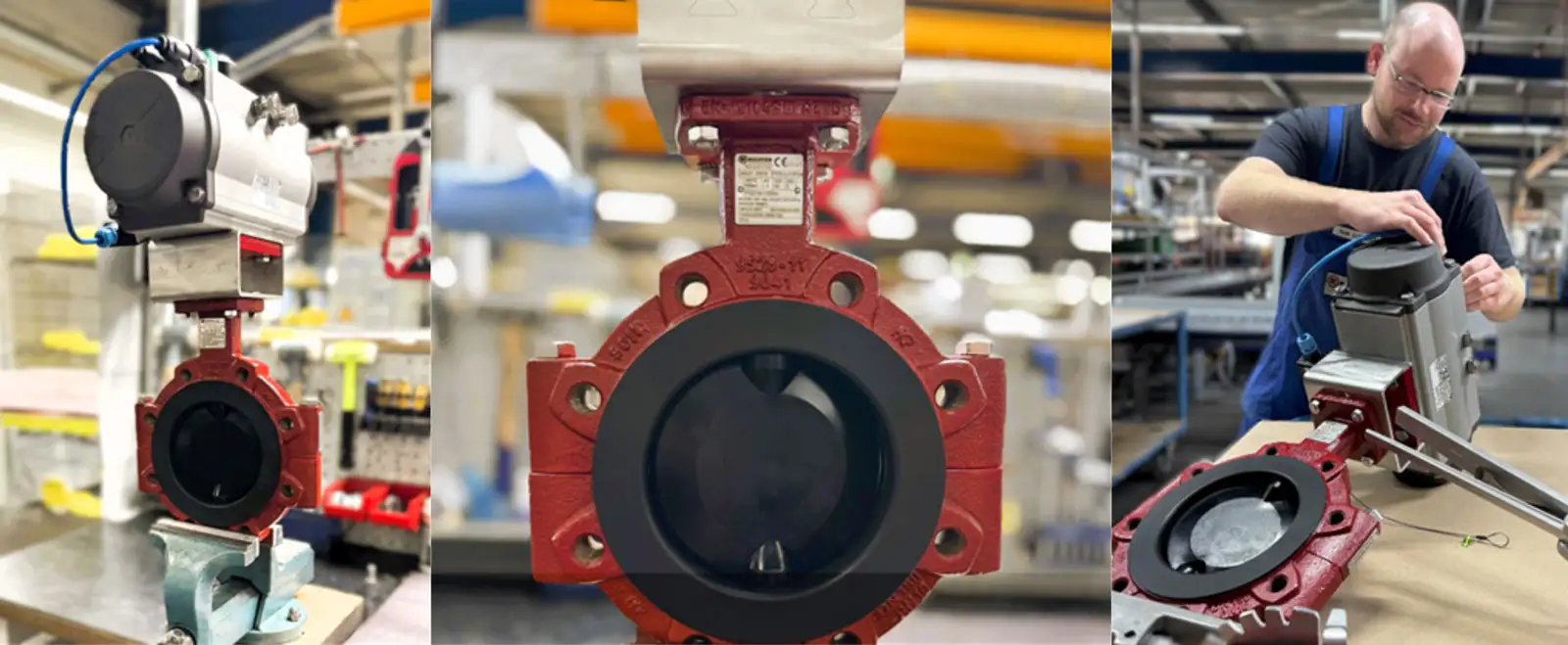 The valves were supplied as turnkey units: pre-assembled with actuator, limit switches, and solenoid valve, fully wired, tested, and documented – ready for direct integration into the plant.