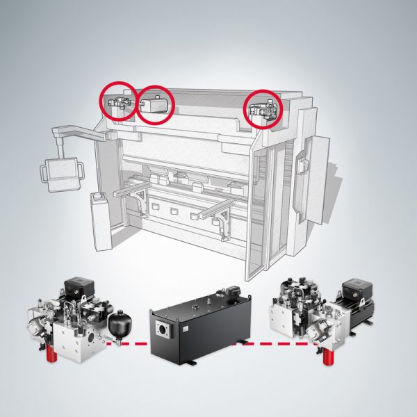 High productivity with lower energy consumption and smaller oil tanks can be achieved in press brakes with servo drives from HAWE Hydraulik