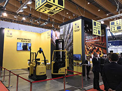 As if moved by magic, the tow tractor advanced on the Hyster stand in Hall 10. Equipped with innovative robotic technology, the truck is one of the first models offered by Hyster Europe. “Our robotic trucks use geonavigation technology developed by Balyo, which does not require complex infrastructure changes to automate logistical processes,” said Timo Antony, Area Business Director Central Europe, Hyster. “Instead, the trucks work utilising the structural features within the building.”
