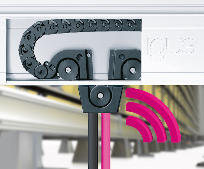 Narrow, compact spaces and fast lanes, e.g. of stacker cranes, are common application scenarios for busbars. Their big disadvantage: they can only be used by default for energy transfer. In order to be able to carry not only energy but also data, liquids and air simultaneously in the horizontal and vertical, igus has developed the micro flizz energy management system. With this travel speeds up to 6 m / s and accelerations up to 4 m / s2 are possible. The micro flizz consists of a plastic energy chain that moves in a channel of aluminum. In addition to highly flexible chainflex control, data and motor cables for tight bending radii, the energy chain can carry hoses as well as optical fibers with data rates of up to 10 Gb / s. Thanks to extensive testing in our own 2,750 square meter test laboratory, igus guarantees a service life of 36 months on all chainflex cables. If the user wants to monitor the transmission characteristics of his bus line used, igus now offers the option of using the intelligent CF.D system in the micro flizz. The smart plastics innovation recognizes changes to the transmission characteristics of the line in advance and provides timely information about a necessary exchange. Thus maintenance is planned ahead and an unexpected shutdown is avoided.