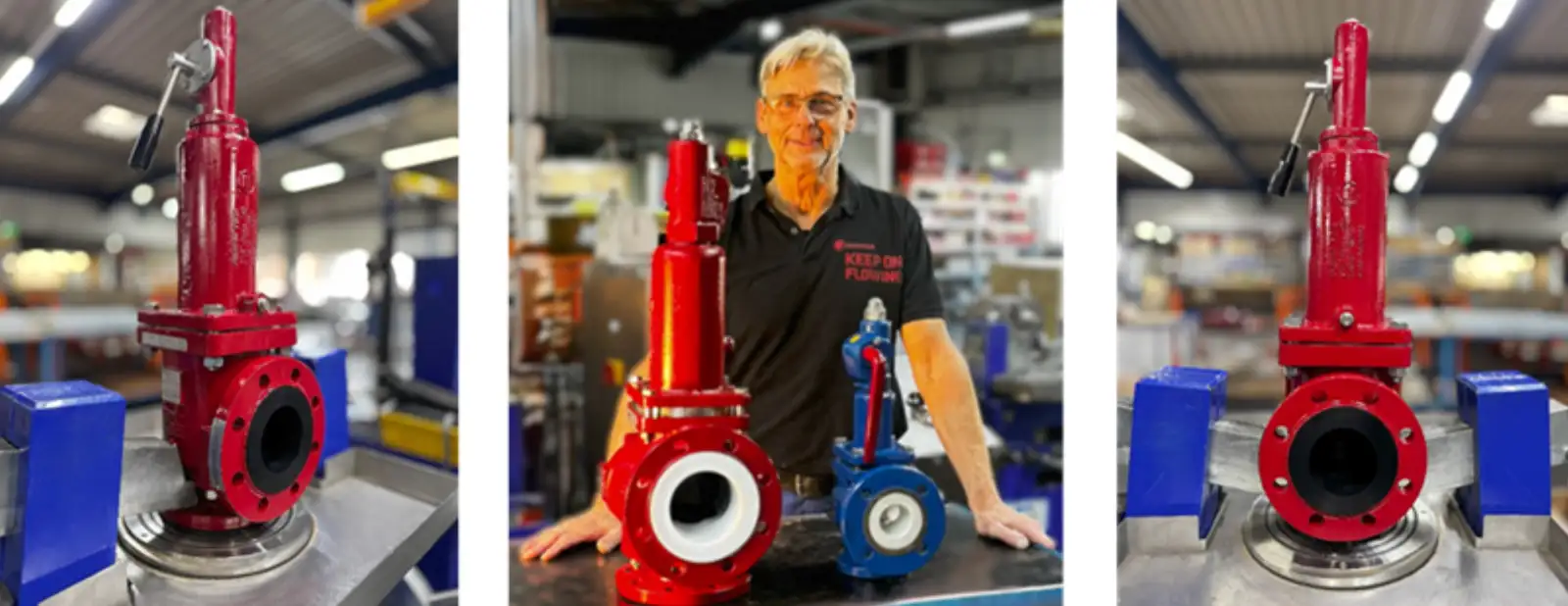 Norbert Ketels with the first-generation safety valve and the new KSE 3.0 – assembling Richter valves for decades and helping shape our innovation story Photo by RICHTER