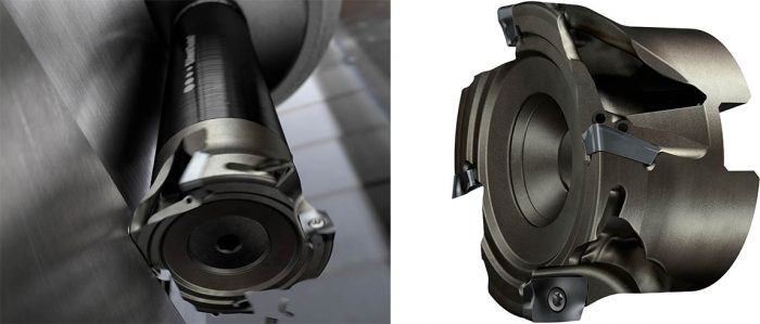 Lightweight CoroMill 390 can perform long-reach face milling, deep shoulder and side milling, cavity milling, and slot milling. The tool is available in 40 mm (arbor 16 coupling) and 50 mm (arbor 22 coupling) diameter variants. Three or four inserts (size 11) can be specified to suit the application. Differential pitch and internal coolant are provided on all cutters.