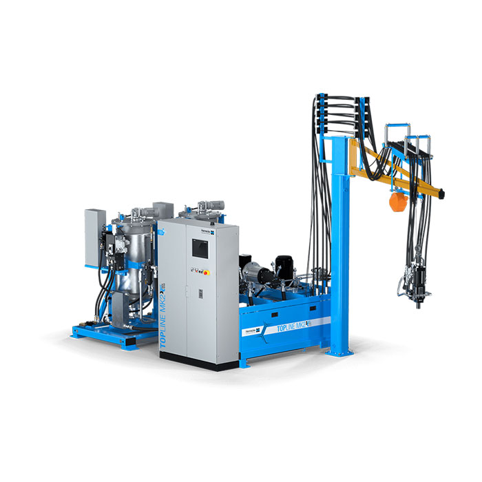 The new TOPLINE MK2 is the crowning highlight of Hennecke's Next Generation series. The premium high-pressure metering machine covers all conceivable PU applications. This is the case too when it comes to highly demanding raw material systems typically requiring the most exact temperature control possible. It is also the first choice for highly automated applications such as refrigerated furniture production, seat foams or exterior and interior components for vehicle production. The TOPLINE MK2 is used as a stand-alone solution or in all conceivable system configurations where the highest quality, the greatest possible production and process stability as well as automation and scalability are required. Alongside powerful basic equipment, it offers maximum flexibility and adapts to even the most complex process requirements thanks to numerous optional modules: