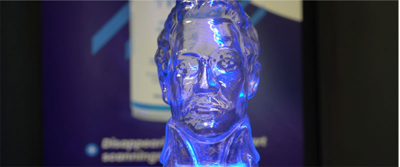 Oliver Niemann, 3D scanning expert at Laserscanning Europe GmbH, presents the advantages of the vanishing AESUB blue scanningspray together with the Artec 3D Spider for 3D digitalization.