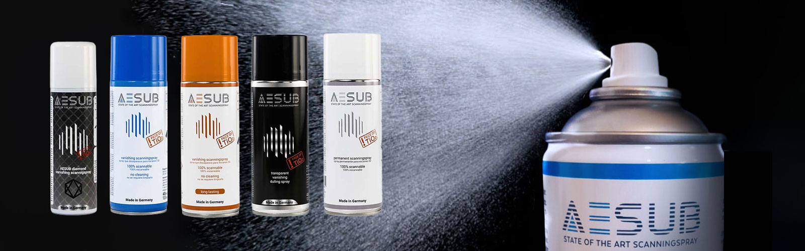 AESUB – a new revolutionary scanningspray. Helps to digitize reflecting and transparent surfaces and evaporates after the 3D scanning. No more mess, no more cleaning, easy to apply, thin layer, super quality – state of the art scanningspray!