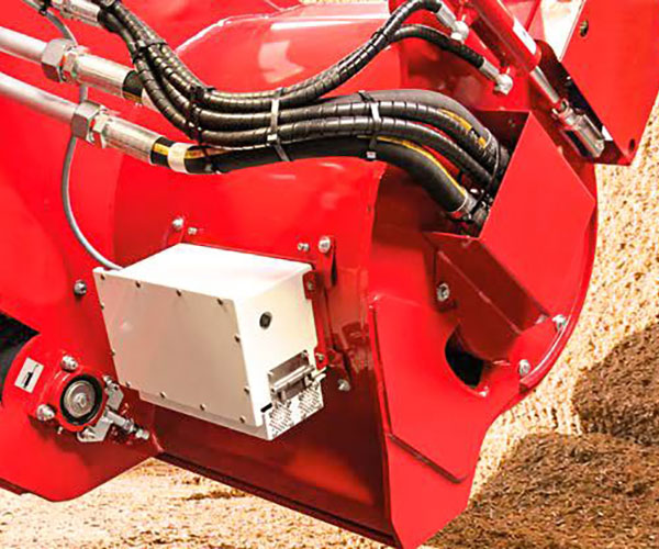 The SILOKING cross conveyor belt at the front with different slat heights and two-sided drive via two hydraulic motors belongs to the standard equipment of the machine, as well as 4 load cells from model Premium 11 on. From model Premium 11 on, the standard gearbox adapts the auger speed to the forage components for optimal forage consistency.